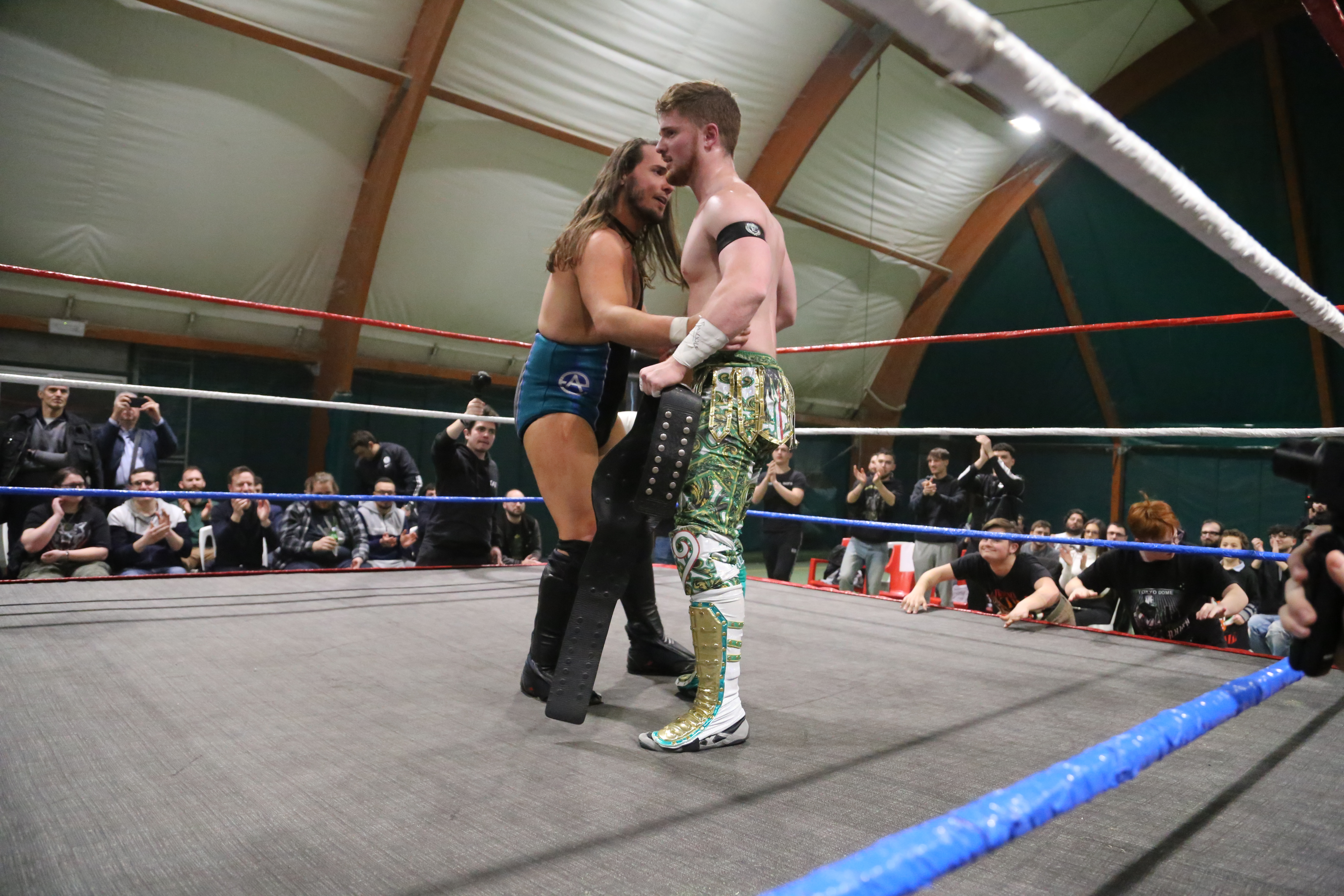 Ovazione per il ritorno in patria di Papa Francesco! Akira riceve tutto l'affetto del pubblico e restituisce una grandissima prova contro il "Gigante" più piccolo del mondo...ANDREW EVERETT! Il Gigante, oltre ad essere un grande intrattenitore, ha dimostrato di essere un atleta incredibile, tirando fuori dal cilindro diverse mosse acrobatiche inaspettate (considerando che io dal vivo non lo avevo mai visto!). Ma è proprio un salto dal paletto andato a vuoto a consegnare la vittoria ad Akira! Festa per tutto il pubblico che accorre a bordo ring per osannare meritatamente Francesco.